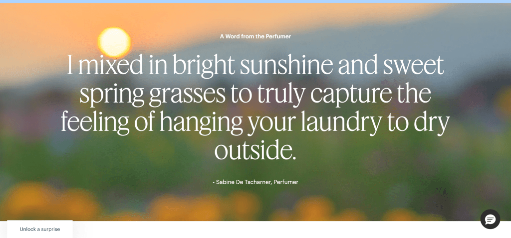 Something that I loved while perusing the site was that their product pages are not just for telling you what it is and how much it costs and some reviews. They’ve gone the extra mile to include the principal perfumer who developed the scent, the top notes, heart notes, base notes, and intensity, and a final section on ethics and sustainability. These things matter, and I really appreciate when a company takes the time to highlight the artists who make their products, and how they’ve been intentional in how they sourced their ingredients.